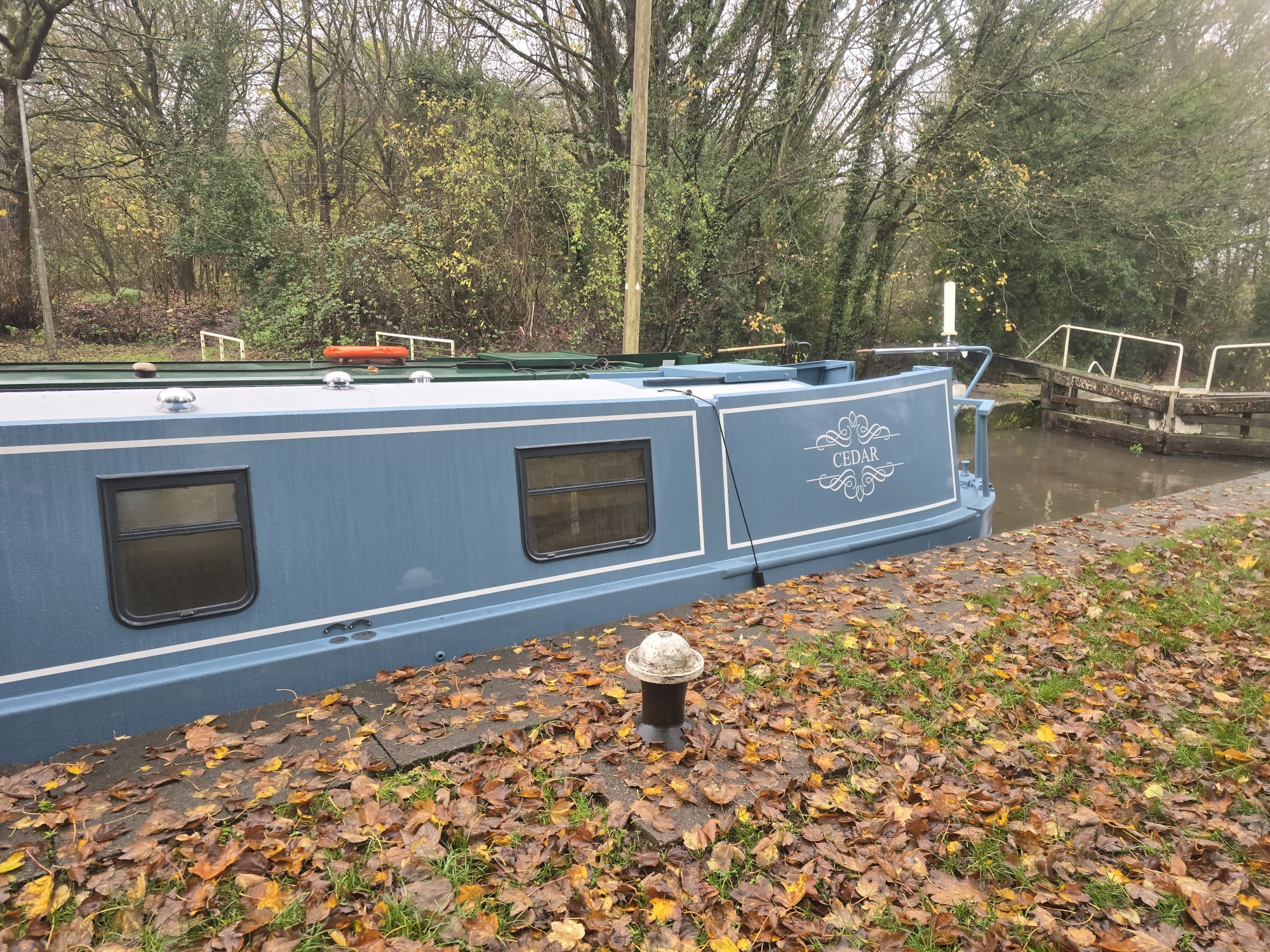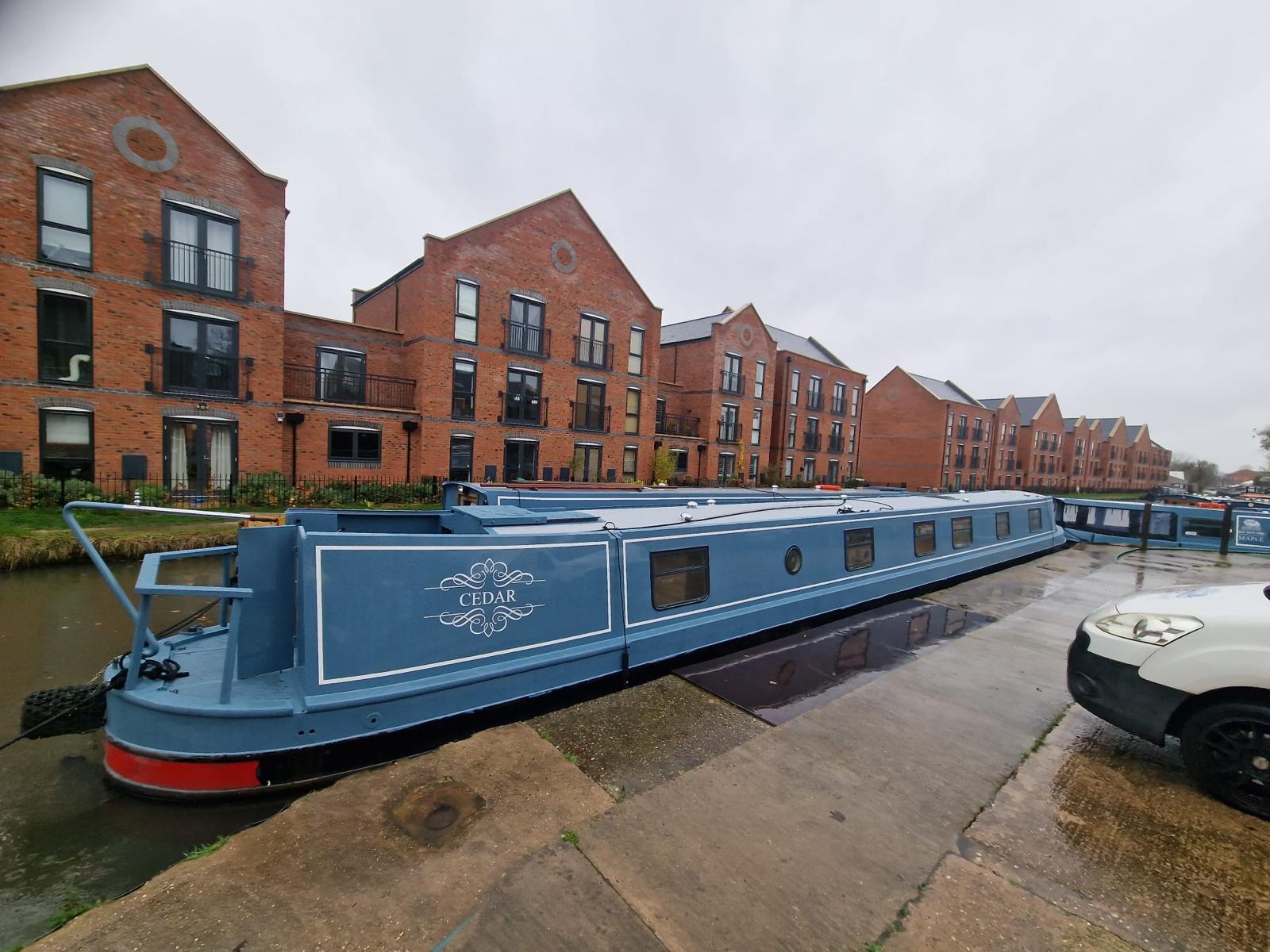 Narrowboat Cedar features a semi-trad stern and boasts two full bathrooms