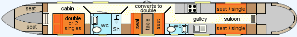 Optional double bed can be set up in saloon / lounge for 2 extra berths.